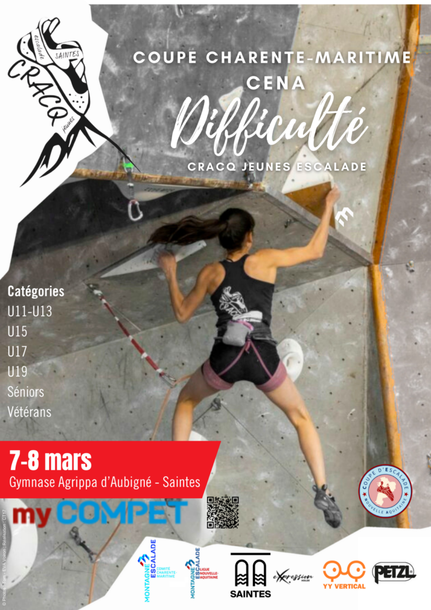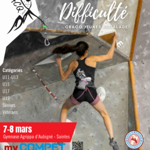 Samedi 7 mars 2026 : Pour les U11 et U13, passage avec heure de grimpe dans ordre précis dans 6 à 8 voies. U13 et U11 en moulinette